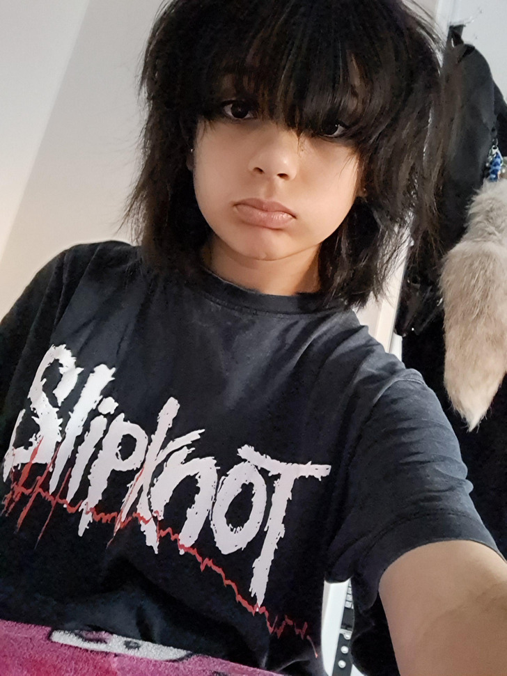 I cut my own hair for school pictures. The barber tried to fix it, but in vain.