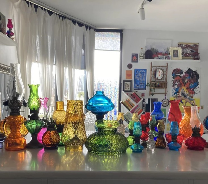 My grandfather collected old oil lamps and glassware for decades. Now his collection is with me. I dream of restoring everything and displaying these wonderful items.