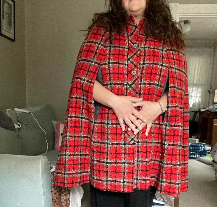 I inherited this beauty from my grandmother. The cape is made of wool and fits just perfectly. Just wore it to the store and got loads of compliments.
