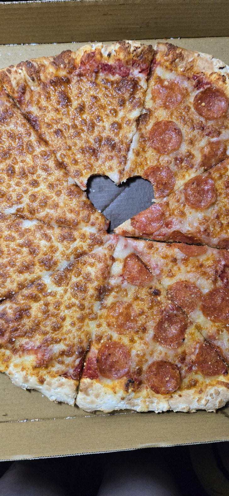 “My husband and I each took a bite before we took our pizza home, accidental heart!”
