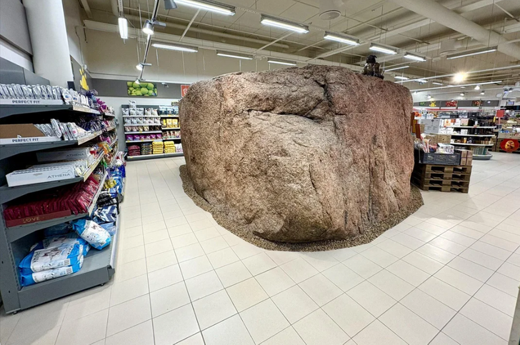 “A 10,000-12,000-year-old glacial boulder inside a regular supermarket in Estonia.”