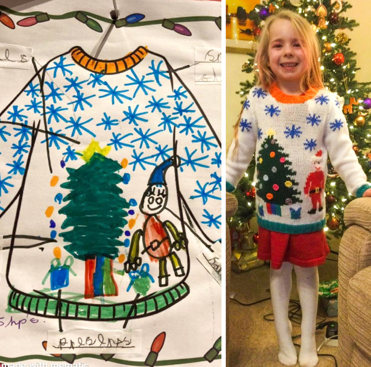 This pup designed a jumper in school and her granny made it for her to wear.