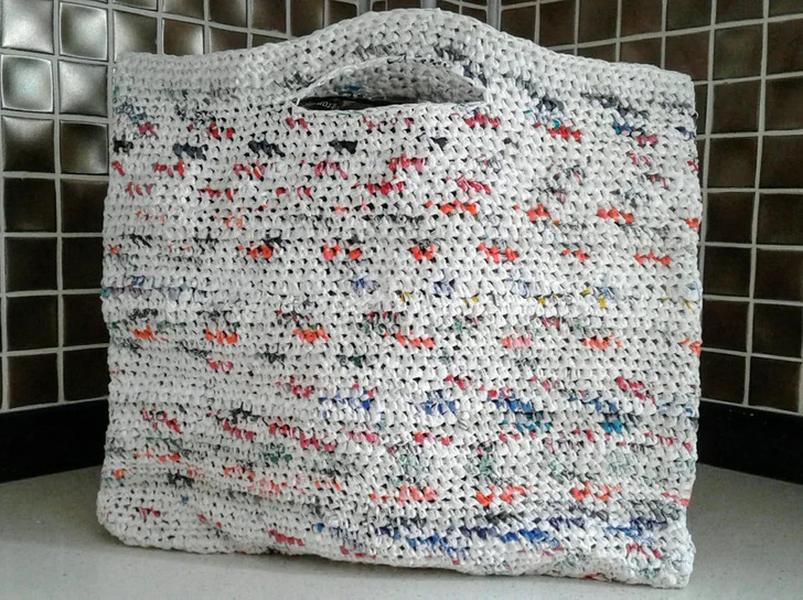 10. “A shopping bag crocheted from plastic bags.”