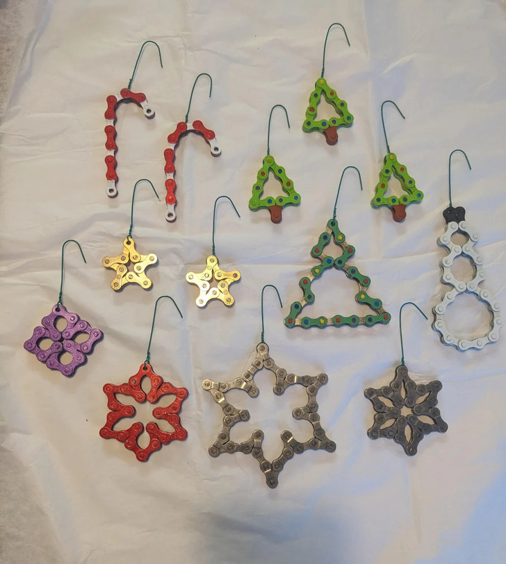 11. “I made a few ornaments from some scrap bike chain.”