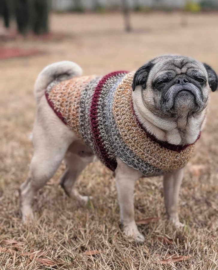 I am very proud of the sweater I knitted, even though my dog didn’t appreciate it.