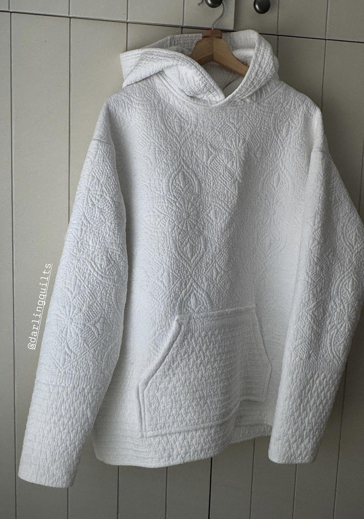 I’ve had a quilted bedspread gathering dust for ages. Today I turned it into a hoodie!