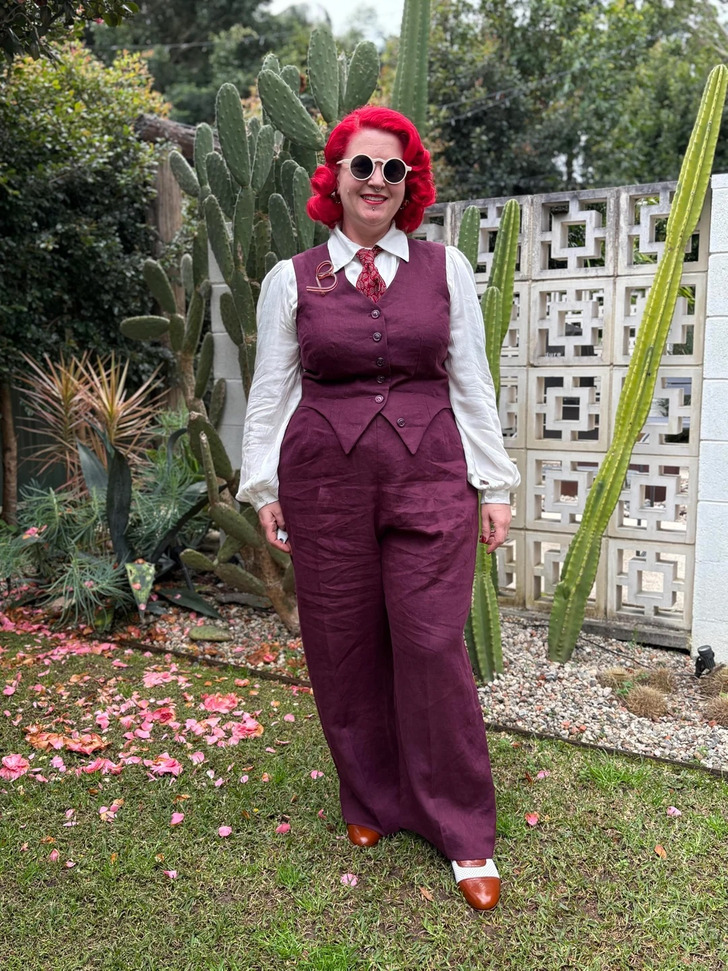 I mostly wear vintage clothes. I made a linen suit in the 30s style.