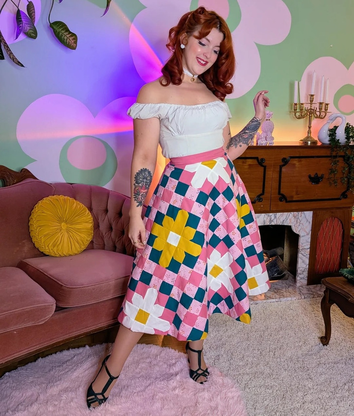 I’ve been drawn to quilting for a long time, but a quilt would be too much for me since I usually make clothes. That’s why I made this patchwork skirt.