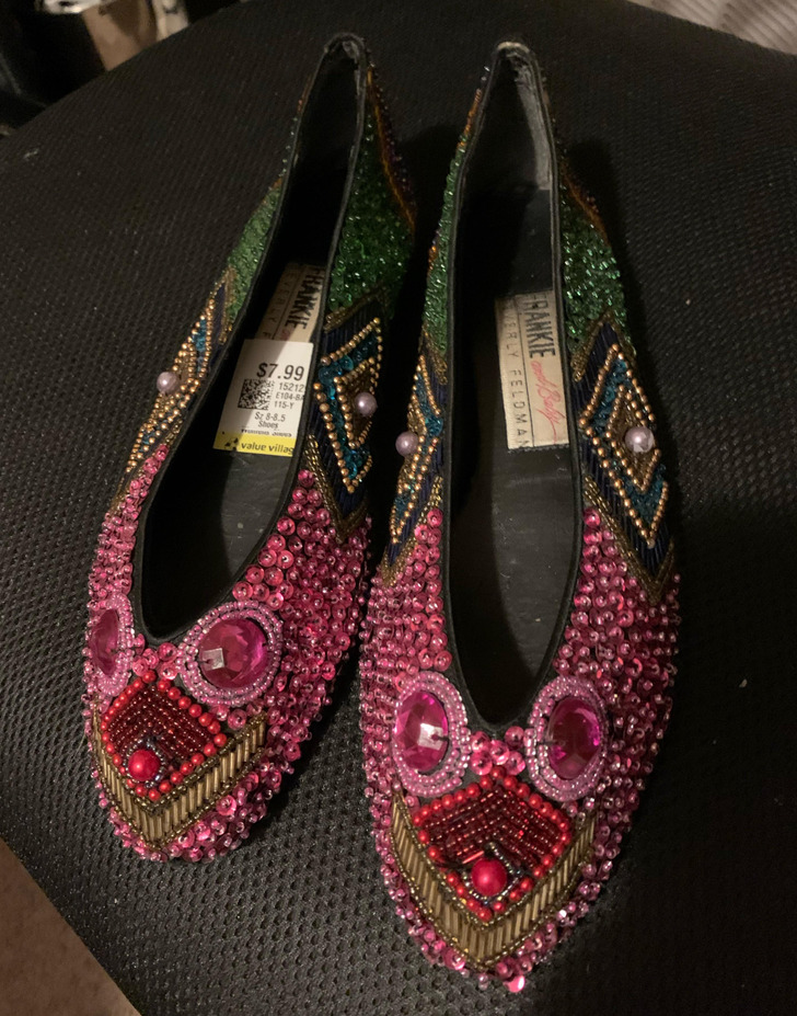Went into our local thrift store and found these lovely ballet flats from the 80s. I’m generally on the hunt for items from that era. The crazier, the better. Can’t wait to wear these.