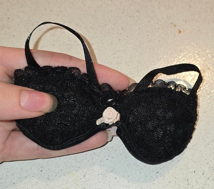 My fiancé found this Victoria’s Secret bra thrifting. I even tried to put it on the cat! Then I found out it was actually a scent sachet for your bra drawer!