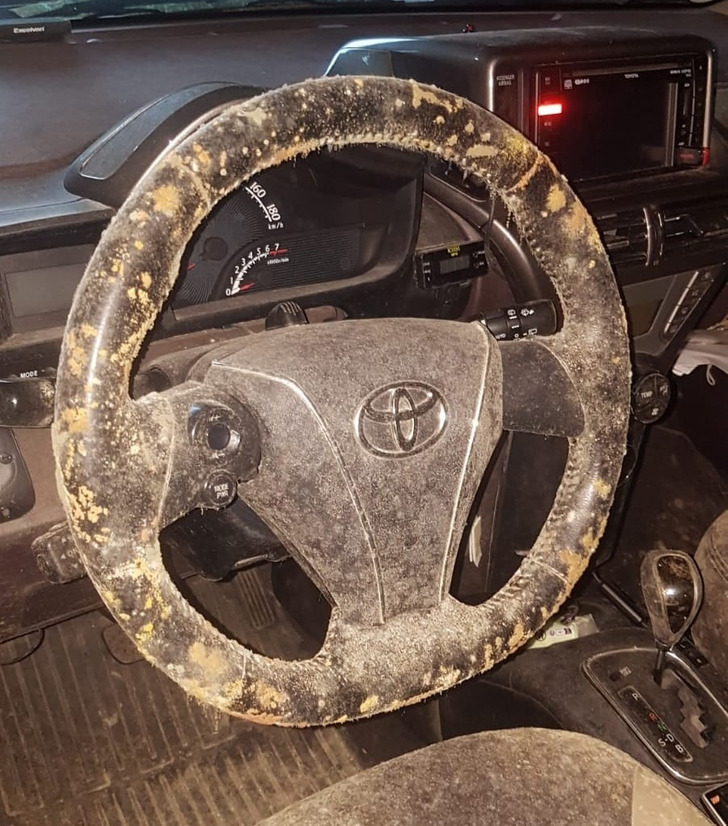 My mom left her car unattended for 2 months. and it got covered with mold.