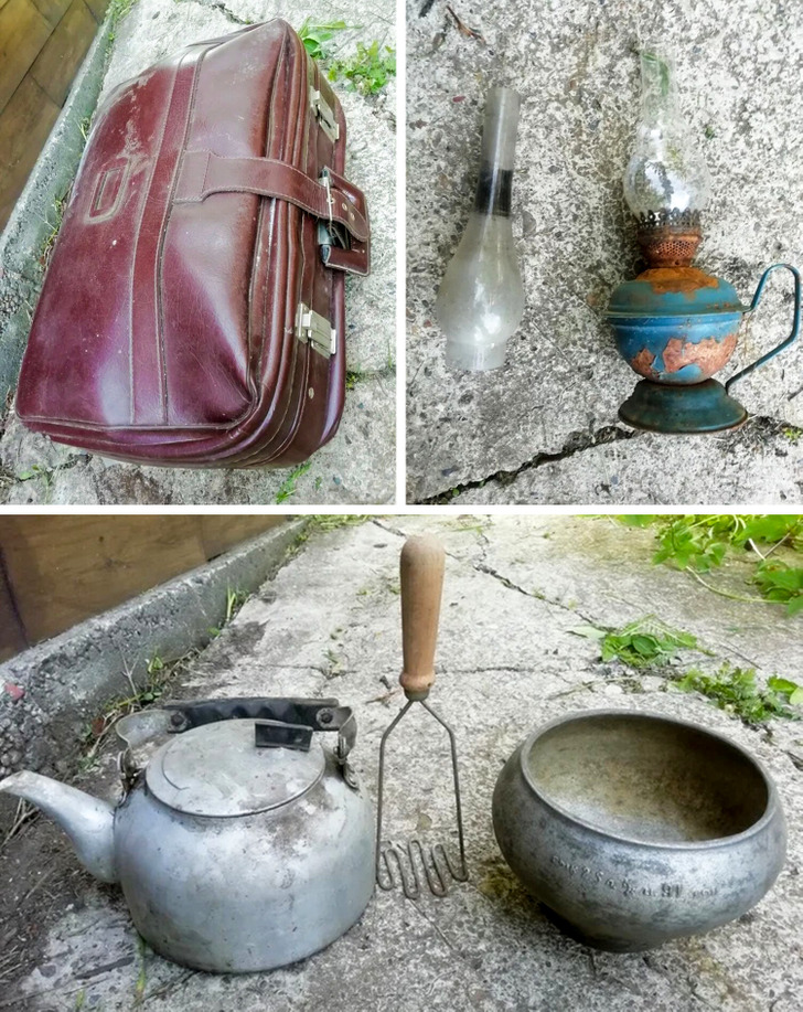 At the edge of my summer cottage plot, there’s an abandoned little house. I found a small stash there where all sorts of household junk were hidden, including this awesome suitcase.