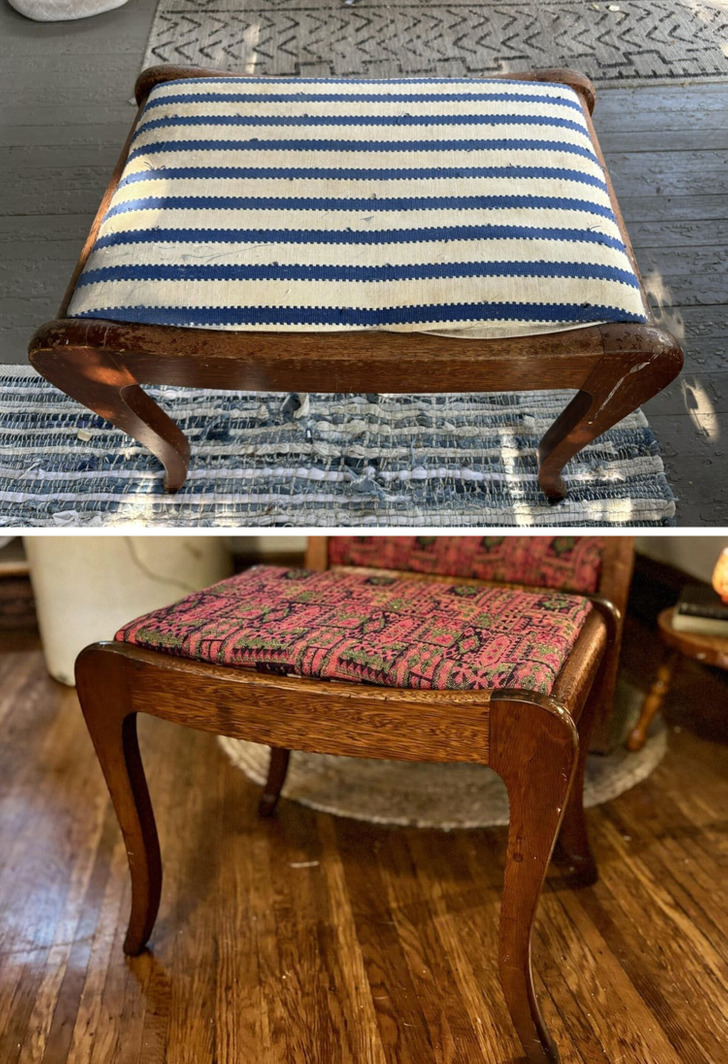 I found a footstool by the side of the road. Restored it, reupholstered it, and now it’s mine!