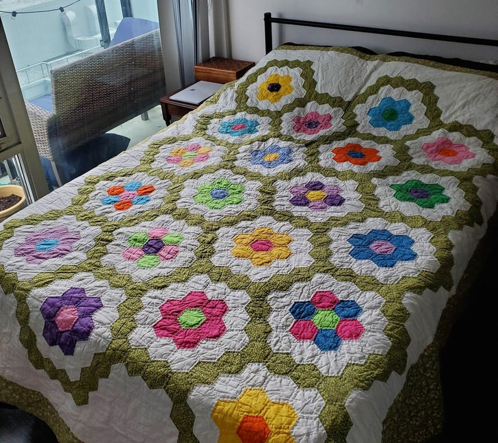 The quilt of three generations. Mom cut the patches, grandma assembled the patterns, and now I carefully mend it. It’s my grandma’s final work and the dearest thing to my heart.