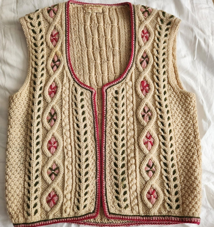 I found this wonderful vest knitted by my great-grandmother. I never met her, but I’ve heard a lot about her. It’s an amazing feeling to hold something she created.