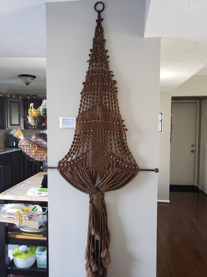 My grandmother made this for my great-great-grandparents 58 years ago. It’s hung in their house, my great-grandparents’ house, grandparents’, and now it hangs in my first house!