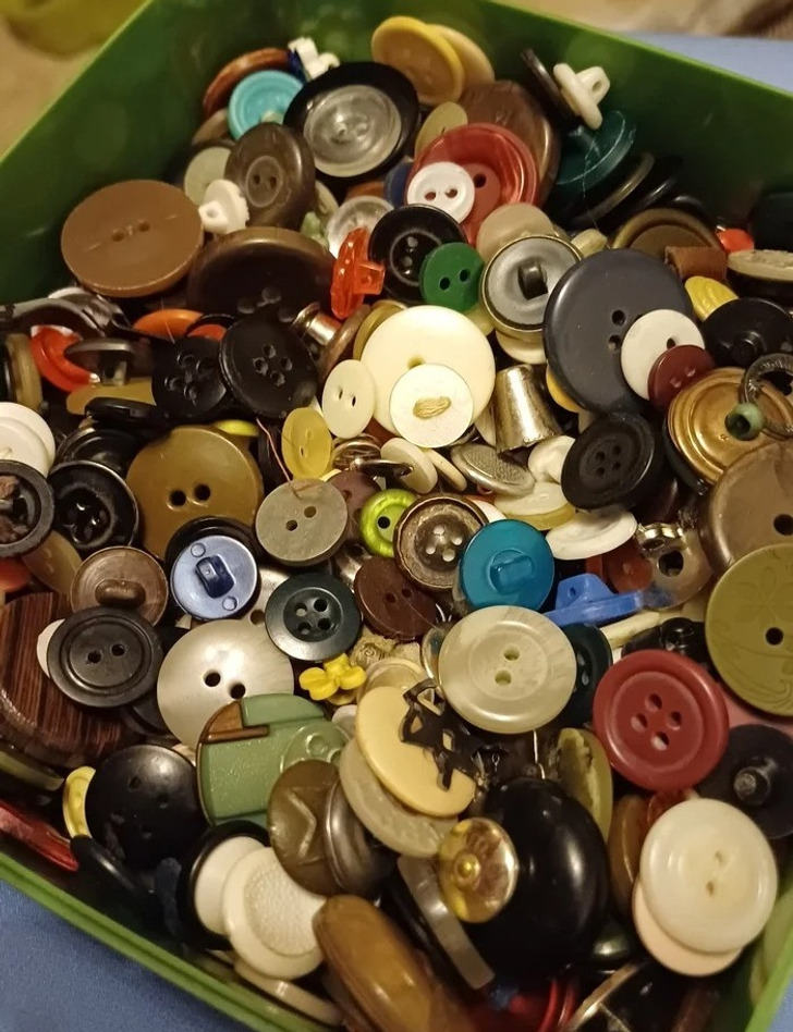 An inheritance from my grandma. As a child, I loved sorting them by size and the number of holes. I could spend hours tinkering with them. It used to be a whole dowry!