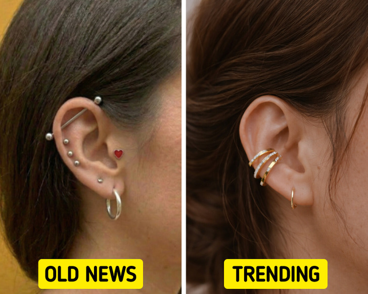 Ear cuffs are taking over, creating the look of a fully stacked ear without committing to more piercings. They add instant edge and make even the simplest outfits feel styled.