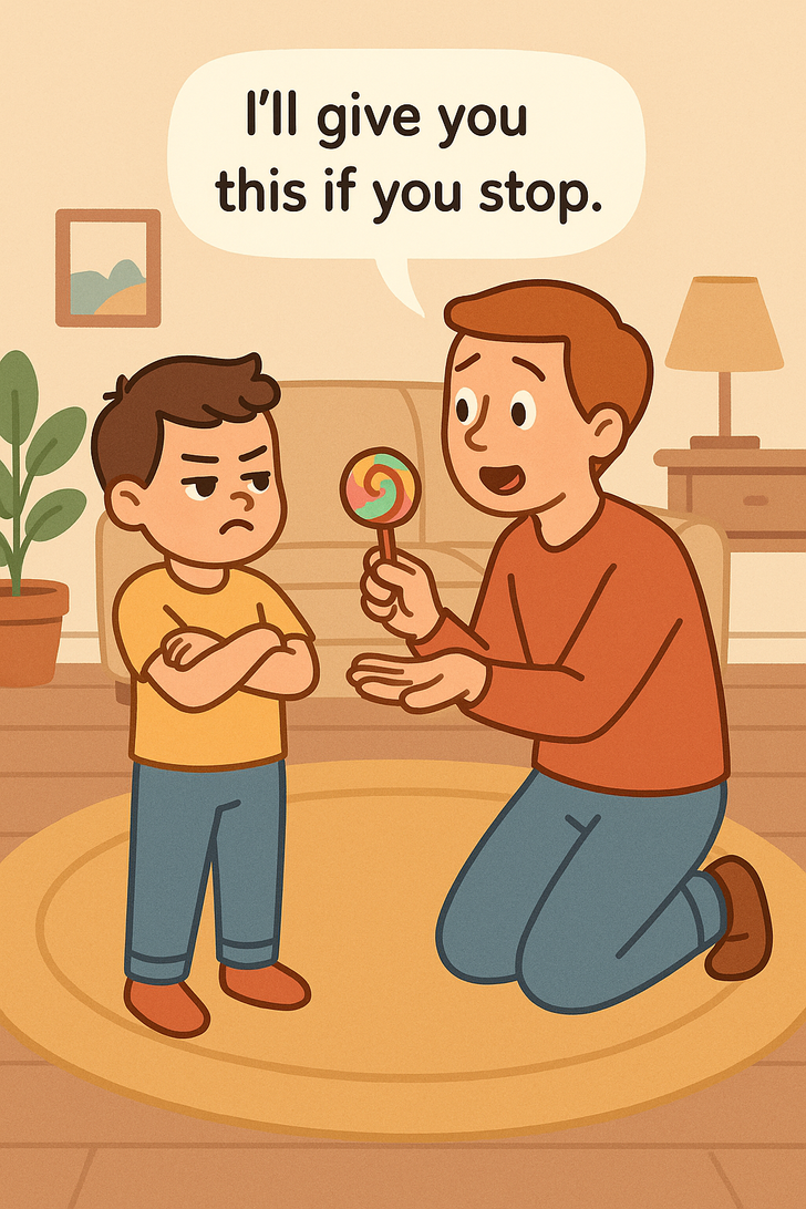 Many children, raised with an “I’ll stop this if you give me that” mentality, often challenge authority by displaying inappropriate behaviors. They quickly learn that if they misbehave long enough, they might get what they want.