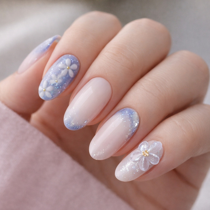 The 2026 update: Nuance nails, a trend originating in Japan and Korea, are taking over. This style uses watercolor techniques and layered sheer colors to create unpredictable, misty patterns. Additionally, 3D sculptural florals—where specialized building gels are used to create raised petals that look like porcelain—are the new way to do “florals for spring.”