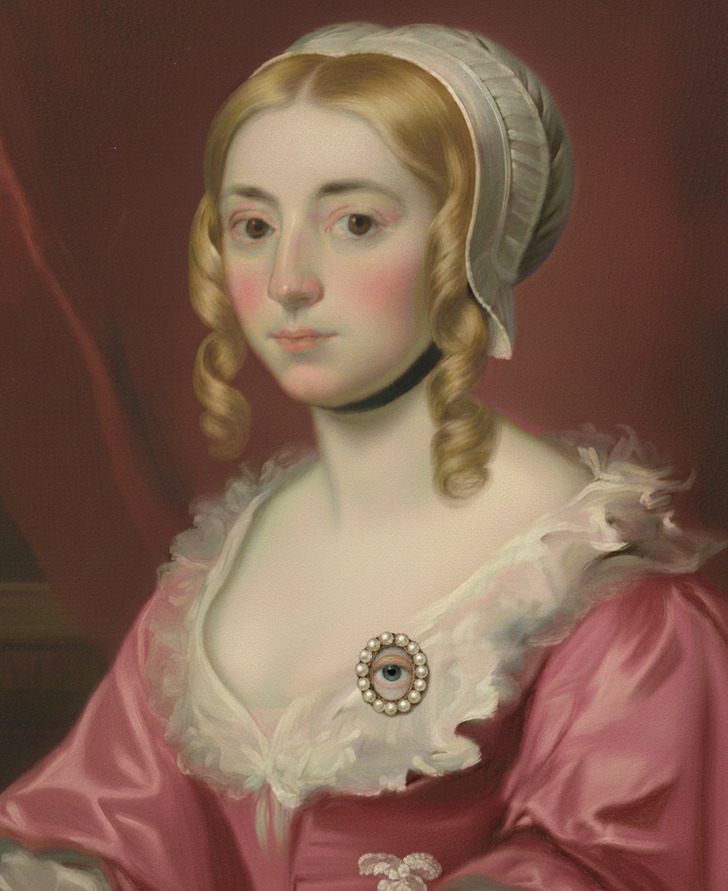 Lover’s eye jewelry became a trend in England during the late 1700s and 1800s, and it was exactly what it sounds like: a tiny painting of just one eye. Artists painted the eye on a small piece of ivory or canvas, and the miniature was then set into a pendant, brooch, or ring. It was intimate, dramatic, and a little mysterious, almost like someone slipped a secret into a piece of fine jewelry.