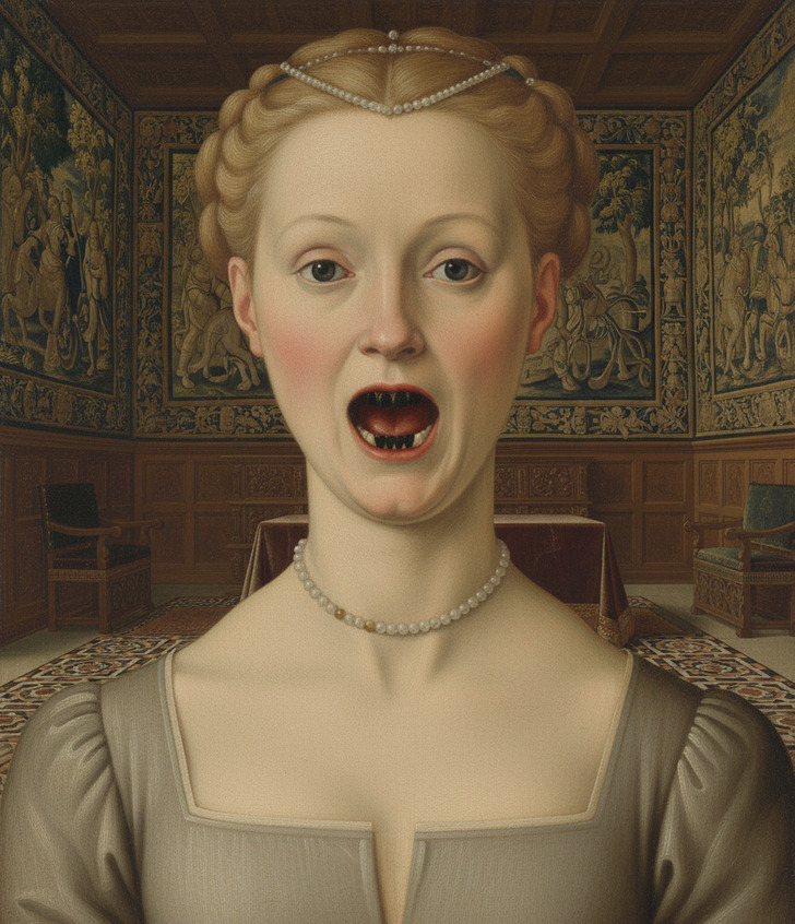 During the Elizabethan era, having blackened teeth was surprisingly seen as stylish. Since sugar was expensive, people with dark or decayed teeth were viewed as wealthy enough to afford lots of sweets. Nobles even took it a step further by coating their teeth with mixtures made of lead, eggs, or other toxic ingredients to get that dark, fashionable look on purpose. It was less about hygiene and more about showing off status.