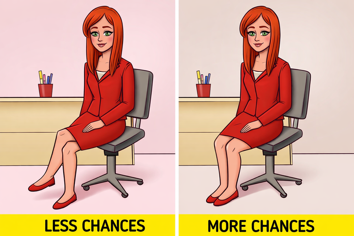 As a rule, your legs often show where you want to go, he explains, which is why it’s best to avoid pointing them toward the exit during an interview.