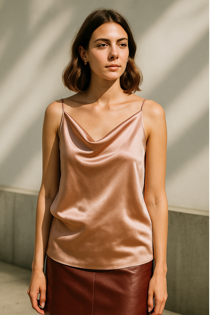 A satin camisole instantly gives off a chic and elegant vibe, but when worn on its own with no accessories, it can look unfinished (and even cheap). Satin naturally reflects light, so pairing it with simple jewelry or layering it with a blazer makes the outfit look intentional rather than last-minute. Without styling touches, even the most luxurious fabric risks looking flat.
