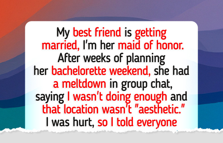 From the very beginning, the OP (original poster) sounded deeply frustrated and hurt by what had happened between her and her closest friend. As she explained, she never expected such brutal and inconsiderate behavior from someone she trusted, someone for whom she had spent so much time and energy organizing a bachelorette party. Here’s what actually happened.