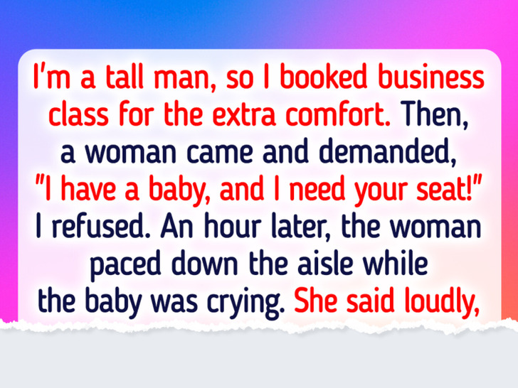 I still can’t believe this happened to me on my last flight about a week ago. I’m a tall man, and whenever I can, I book business class because the extra space makes all the difference. I paid for it with my own money, looking forward to finally having a comfortable trip.