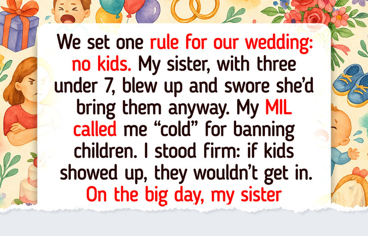 Then my future mother-in-law chimed in. She said banning kids was ‘cold’ and would make the wedding feel ‘unwelcoming.’ I asked her if she wanted my first dance drowned out by a toddler tantrum. That ended the conversation — but the tension grew.
