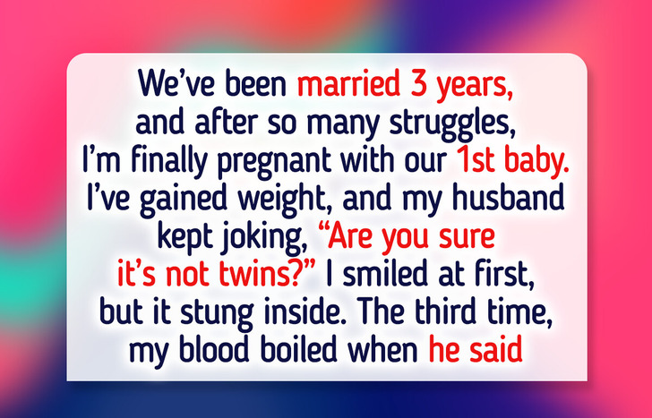 Last weekend, he made a joke for the third time, saying, “Are you sure it’s not twins?” My blood boiled, and I shot back with, “Keep it up, and I’ll start asking if your jokes are just a cover for your insecurity.”