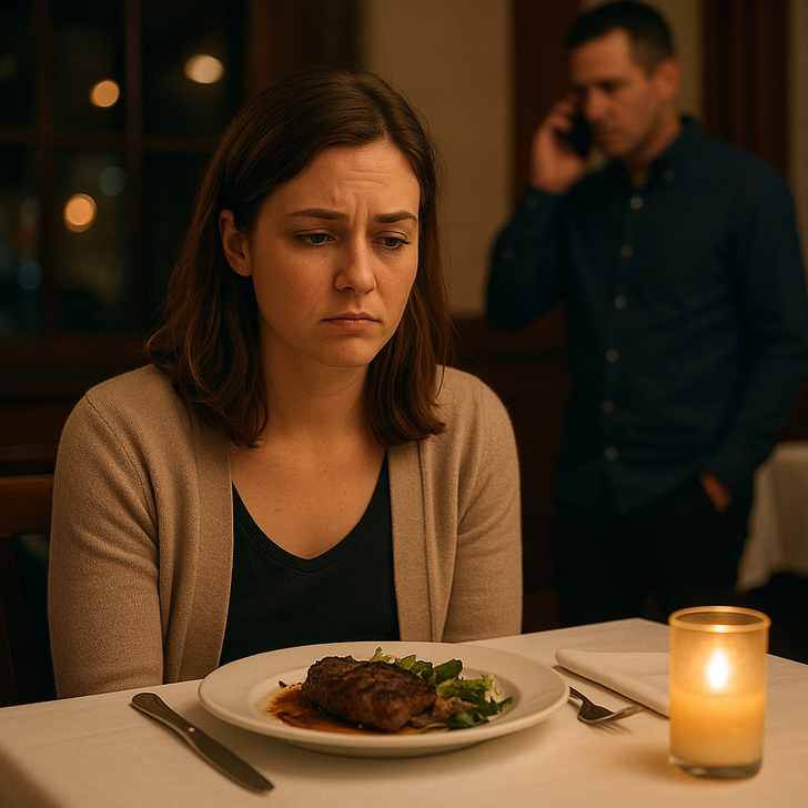 I told him it made me uncomfortable. He brushed it off — “She doesn’t have anyone else.” I let it go until she called during our anniversary dinner about a leaking sink — and he left. I sat there alone with his half-eaten steak.