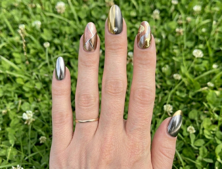 Mixed metals introduce a bold and contemporary direction in manicure, nail art, and nail design trends for Spring 2026. Combining reflective nail polish tones with metallic accents enhances gel manicure finishes and creates a striking beauty effect. This style reflects modern beauty preferences for experimental, high-shine nail art that feels both edgy and refined.